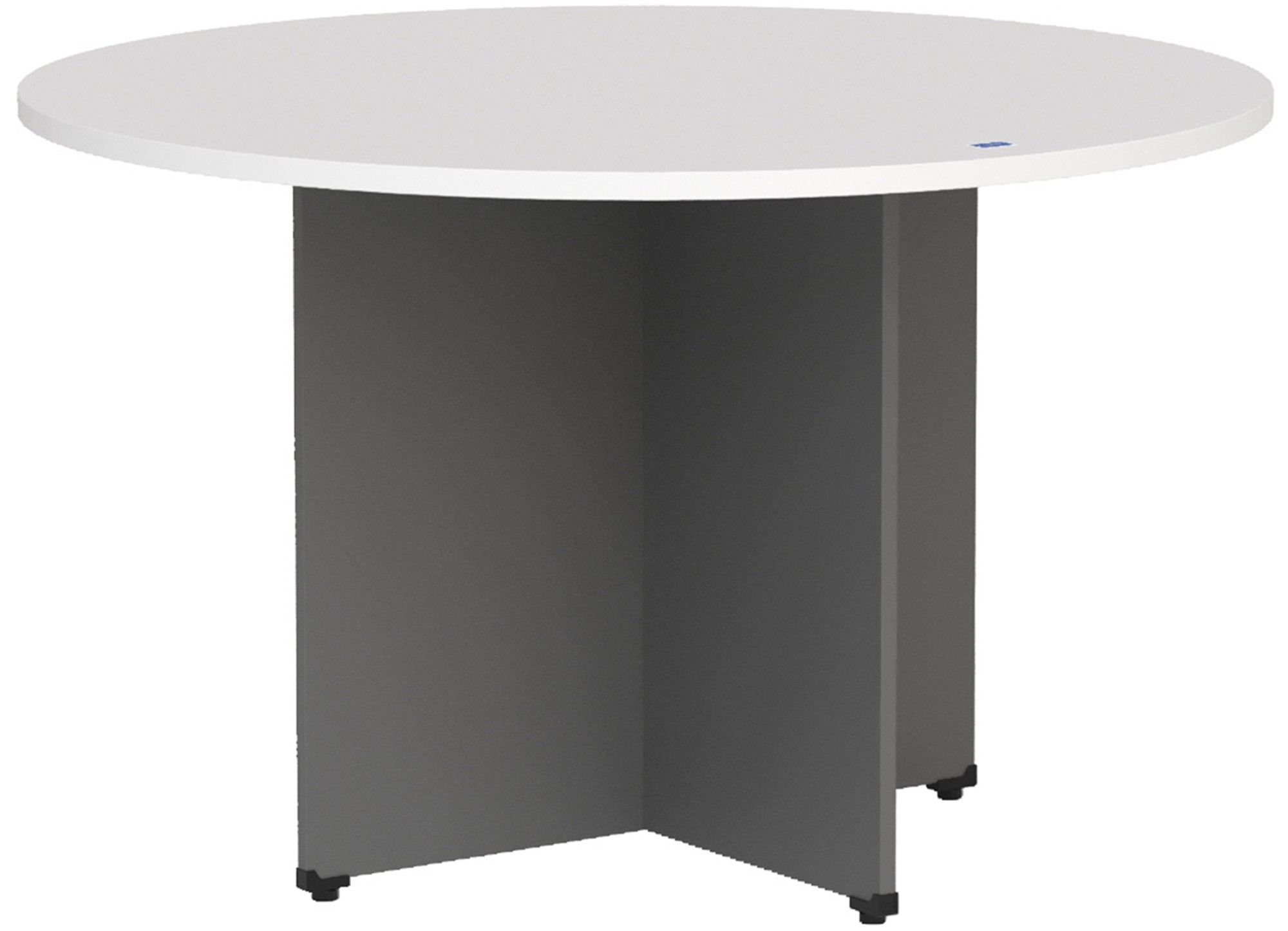 Bàn họp gỗ công nghiệp mặt tròn, kết hợp với chân chữ thập.