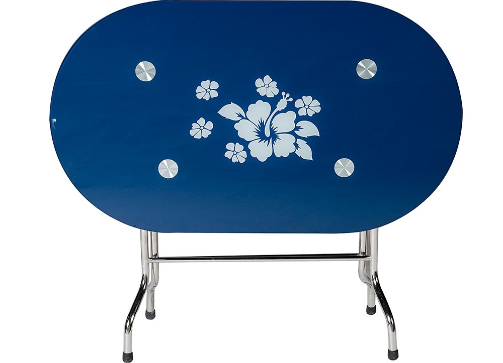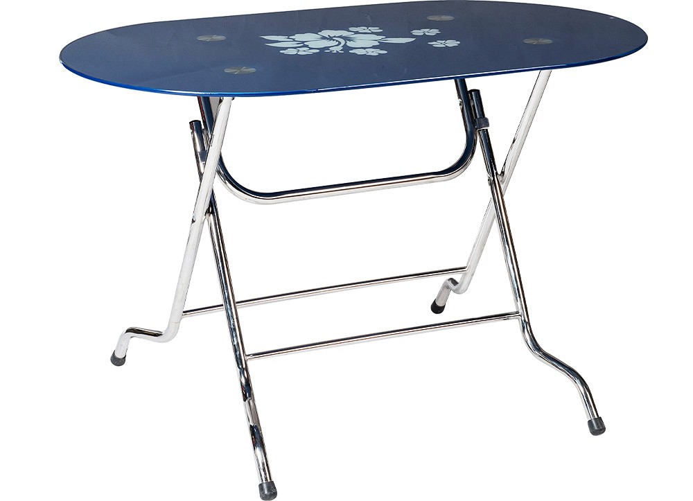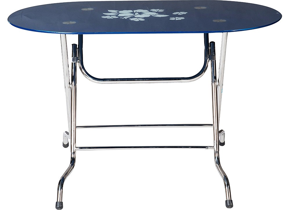 Bàn ăn chân gấp khung Inox, mặt kính cường lực sơn màu. Chân bàn sử dụng ống Inox kích thước 22.2mm.