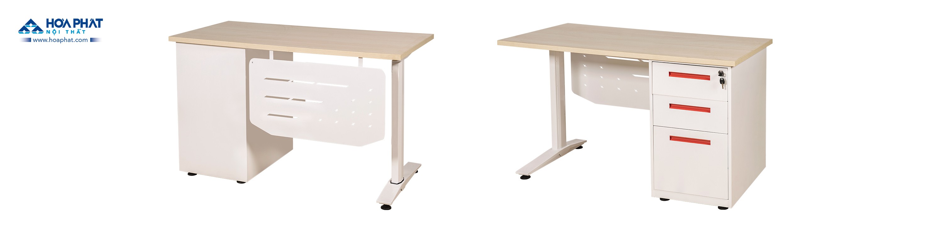 Bàn làm việc Luxury có hộc liền và tay nắm âm màu cam.