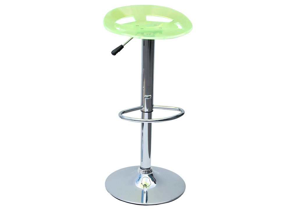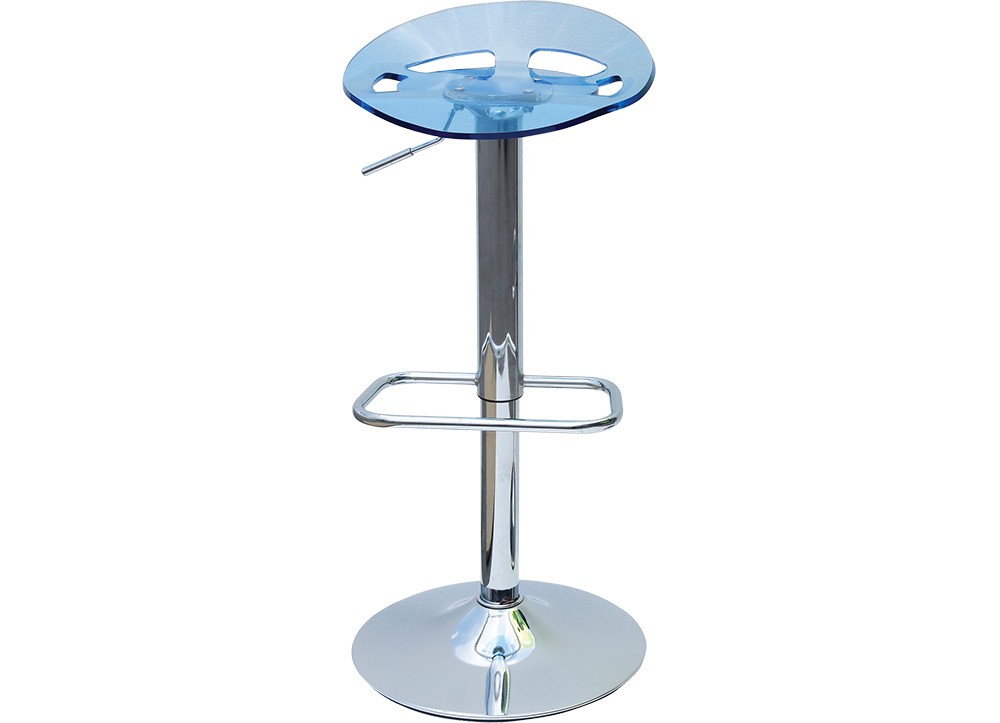 Ghế quầy bar có đệm bằng nhựa, chân đế thép dập mạ Ni-Cr bóng sáng.