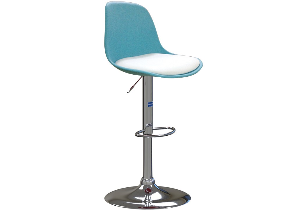 Ghế quầy bar lưng trung đệm bằng nhựa có thêm lớp đệm Pvc, chân đế thép dập mạ Ni-Cr bóng sáng.
