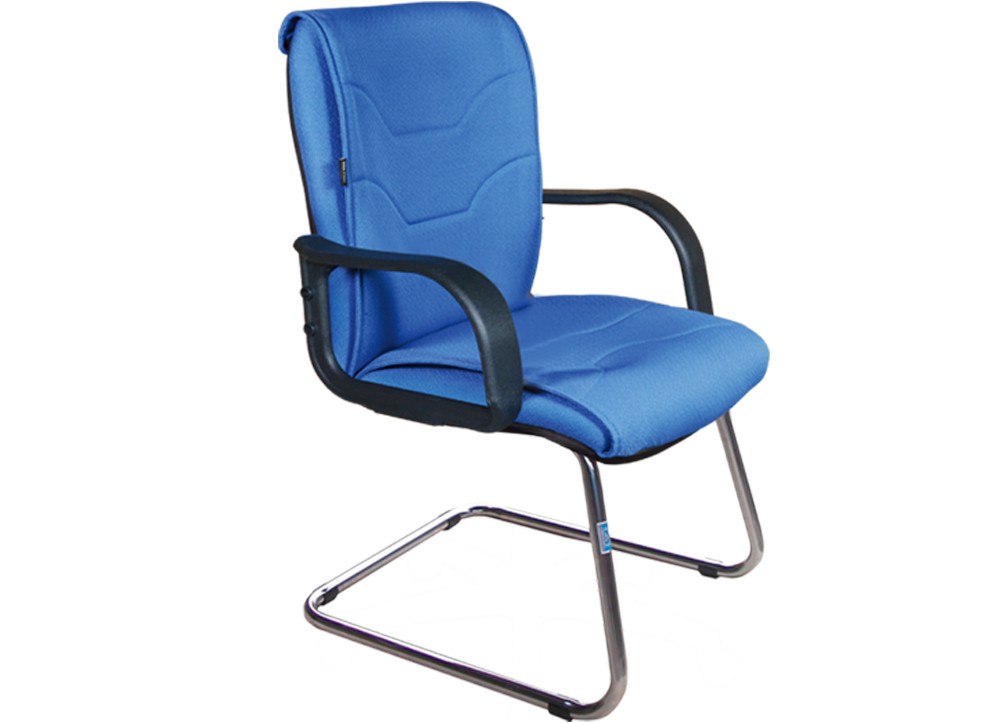 Ghế họp lưng trung khung thép mạ, đệm tựa mút bọc vải, tay ghế bằng nhựa.