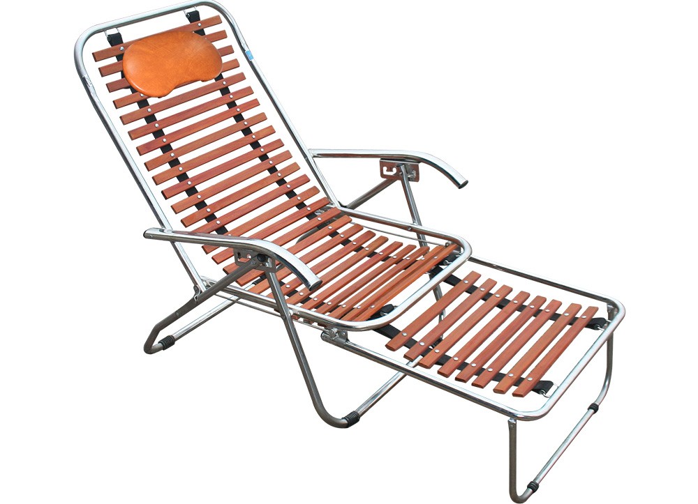 Ghế nghỉ khung thép mạ hoặc inox có thể gấp gọn, sử dụng nan ghế bằng gỗ tự nhiên.