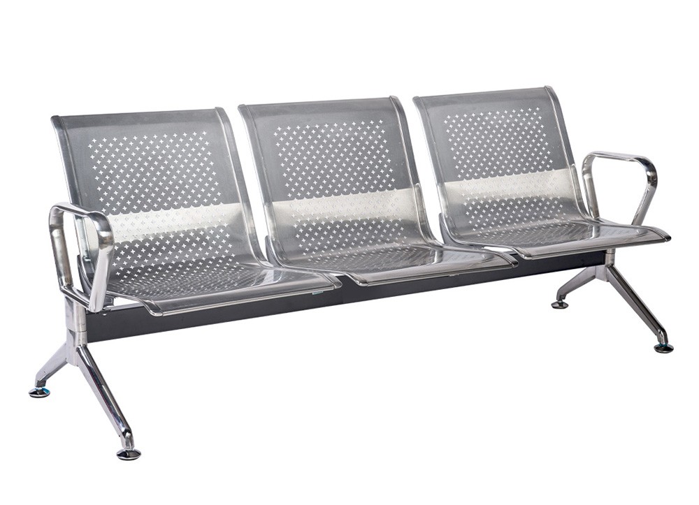 Ghế phòng chờ có chân và đệm bằng Inox có đột lỗ, phần khung giằng đỡ đệm bằng thép sơn tĩnh điện