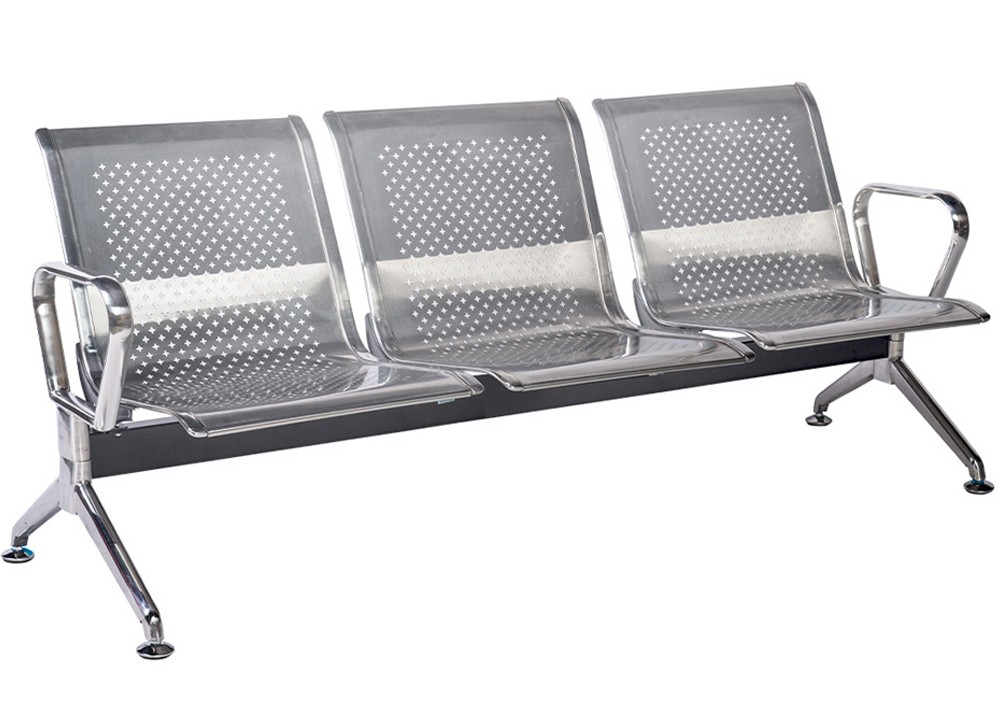 Ghế phòng chờ có chân và đệm bằng Inox có đột lỗ, phần khung giằng đỡ đệm bằng thép sơn tĩnh điện, ghế có 3 chỗ ngồi.