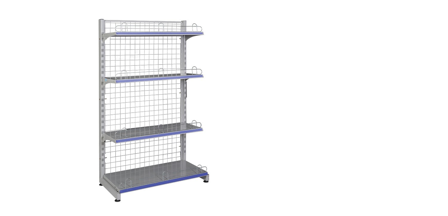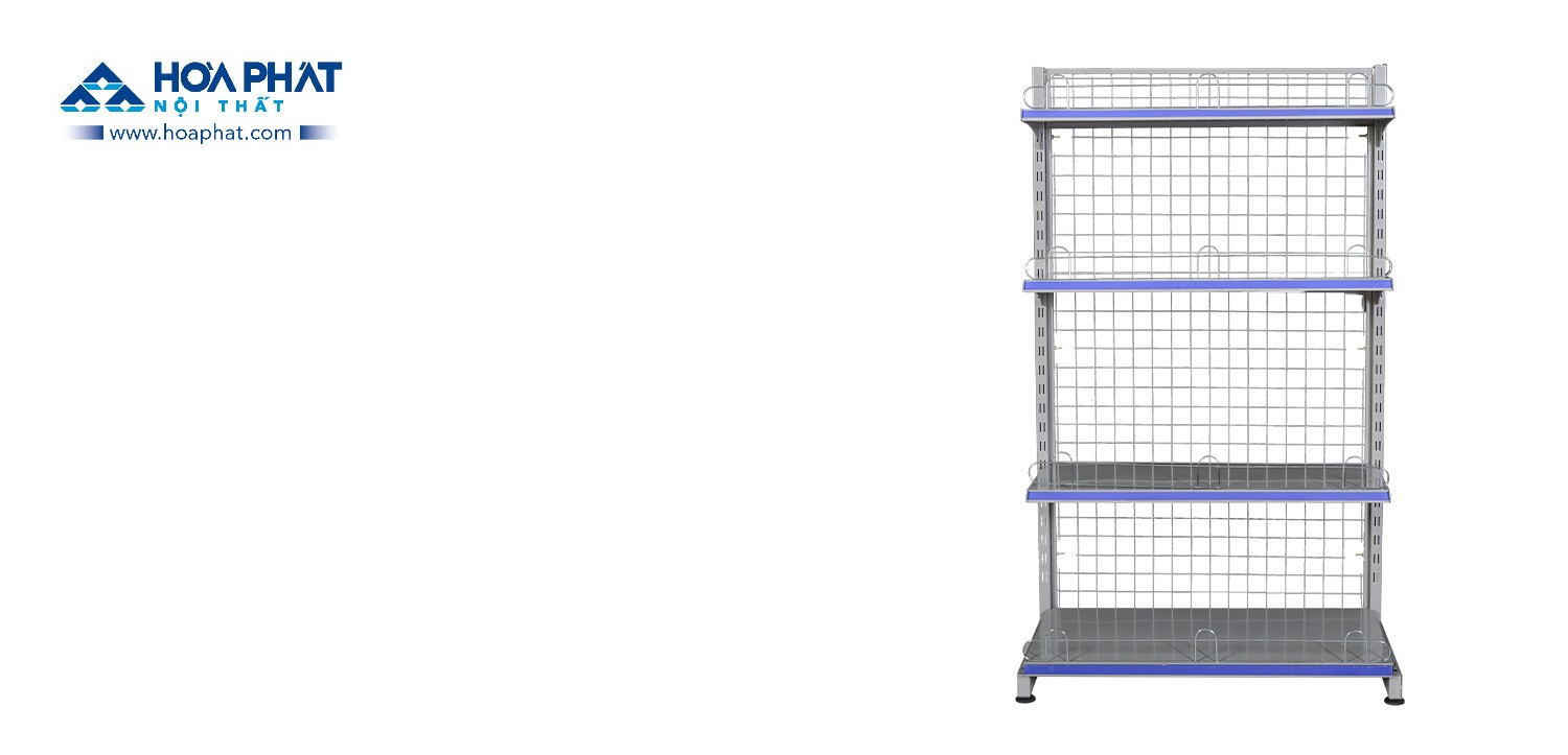 Giá siêu thị để hàng 1 mặt khung thép sơn tĩnh điện, có 4 tầng để đồ (gồm đáy và đợt).