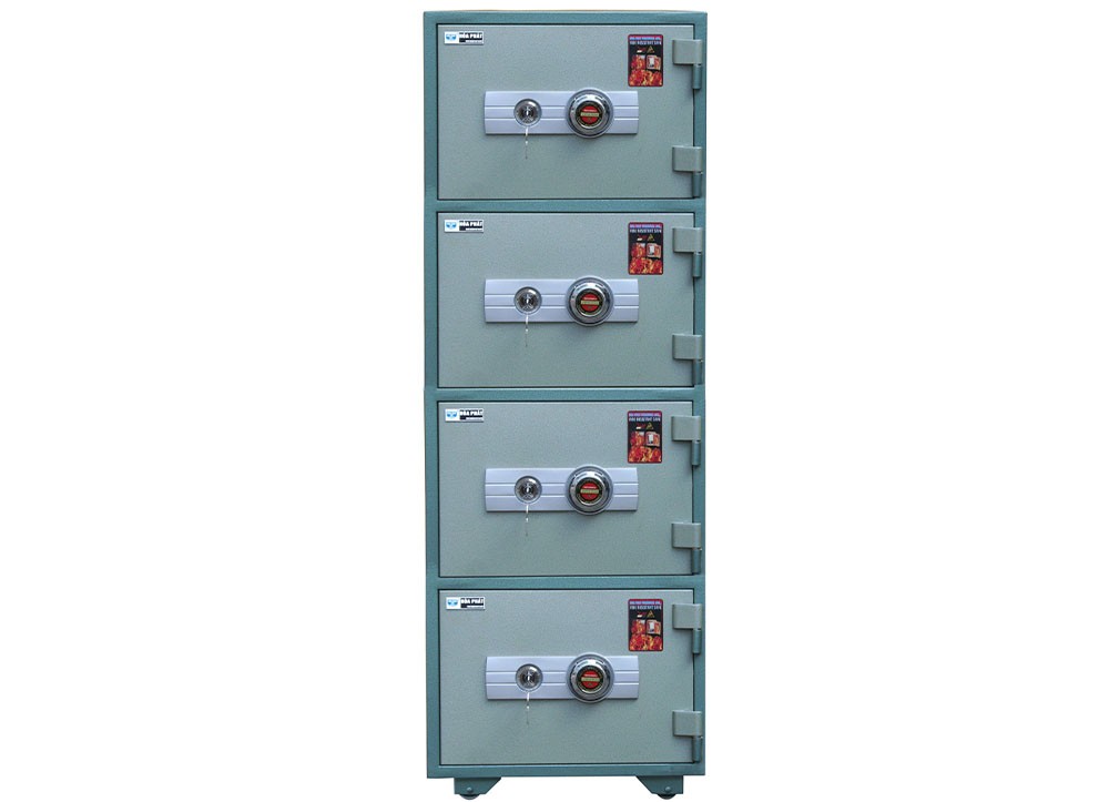 Két đứng 4 tầng riêng biệt, mỗi tầng có khóa chìa, khóa mã và 1 đợt cố định.