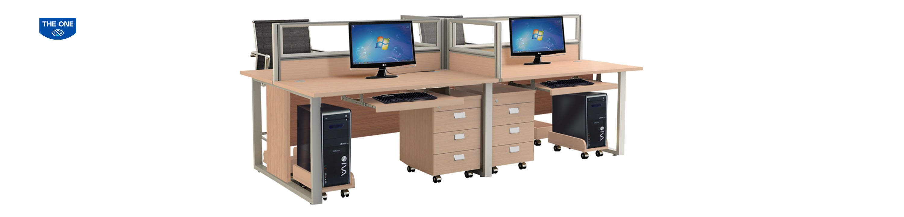 Module làm việc 4 chỗ, mặt bàn chữ nhật sử dụng chân sắt C2 và có vách ngăn HP02.