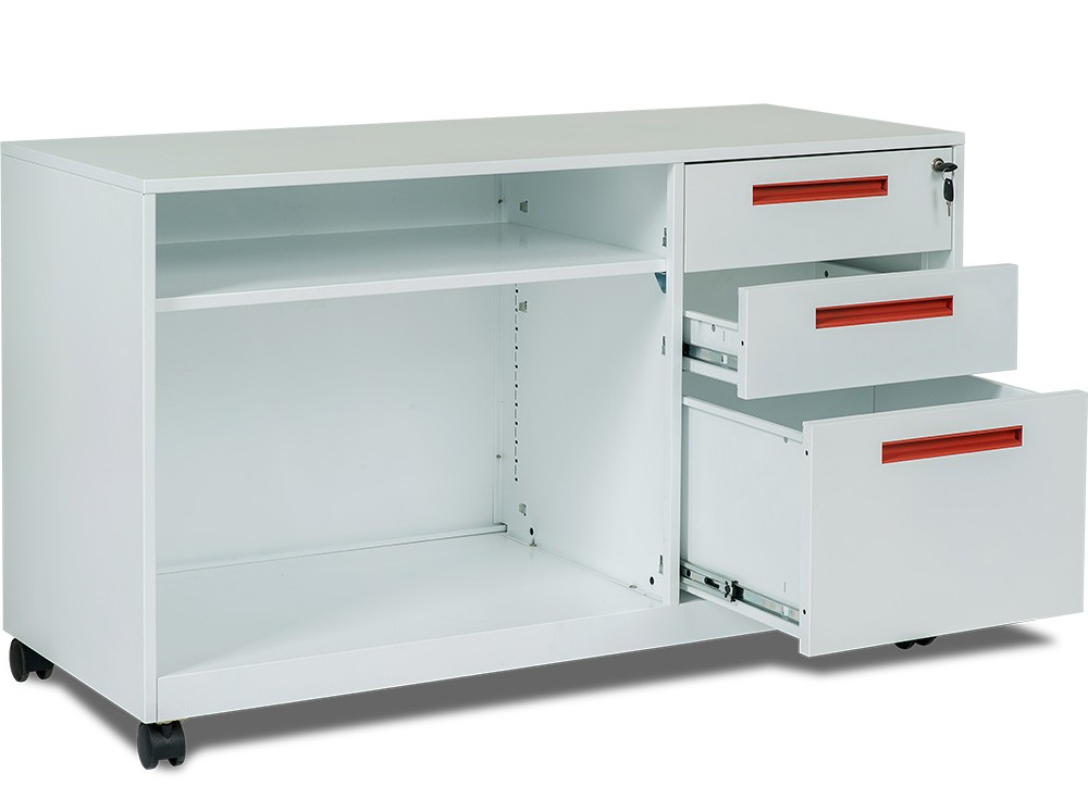 Tủ phụ thép sơn tĩnh điện màu trắng sáng phù hợp không gian văn phòng hiện đại.
