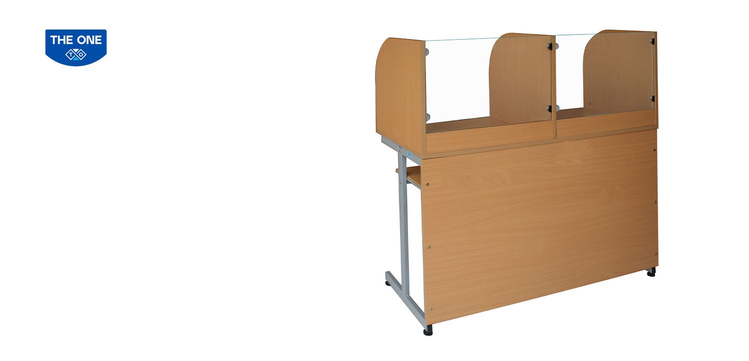 Có 2 chỗ ngồi và vách ngăn chia khoang trên mặt bàn.