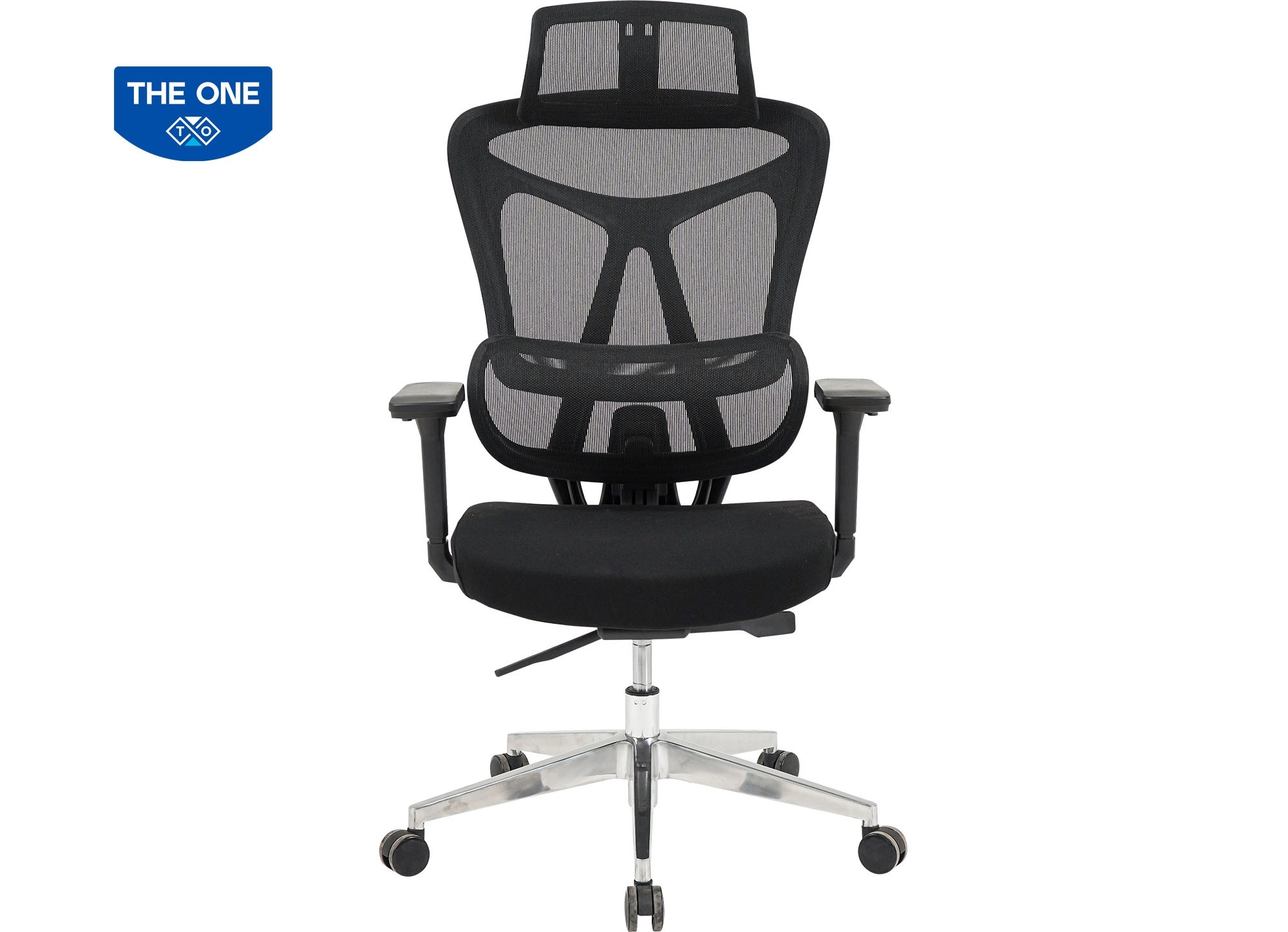 Ghế công thái học, đệm mút đúc bọc vải có ốp đệm cao cấp, tựa nhựa bọc vải lưới có thể ngả hãm ở nhiều góc độ.