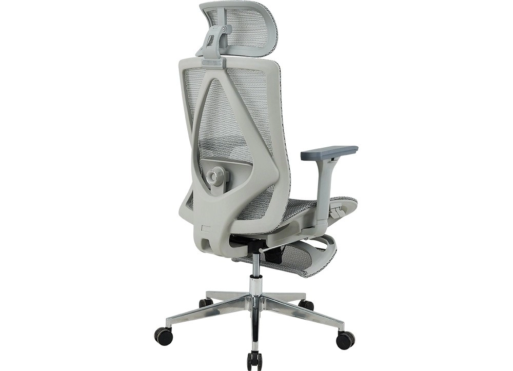 Ghế công thái học cao cấp, tựa ghế có khả năng ngả hãm nhiều góc độ, eo ghế có núm vặn điều chỉnh phù hợp người ngồi.