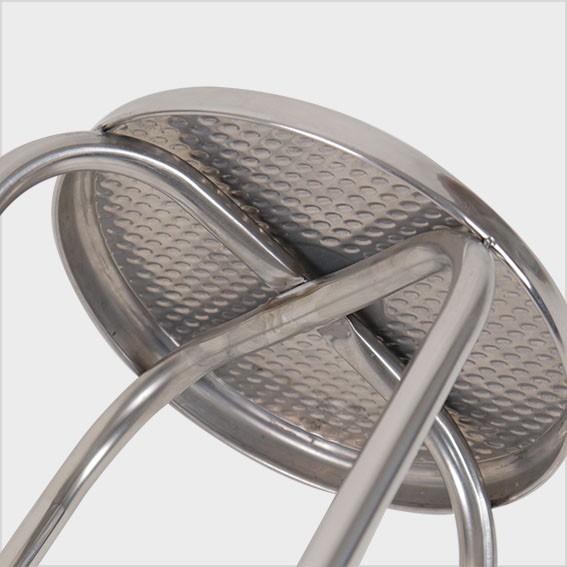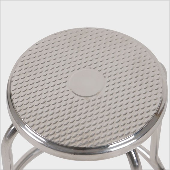 Ghế đôn chân tĩnh khung Inox, đệm ghế bằng inox mặt sần. Mặt ghế đường kính 270mm