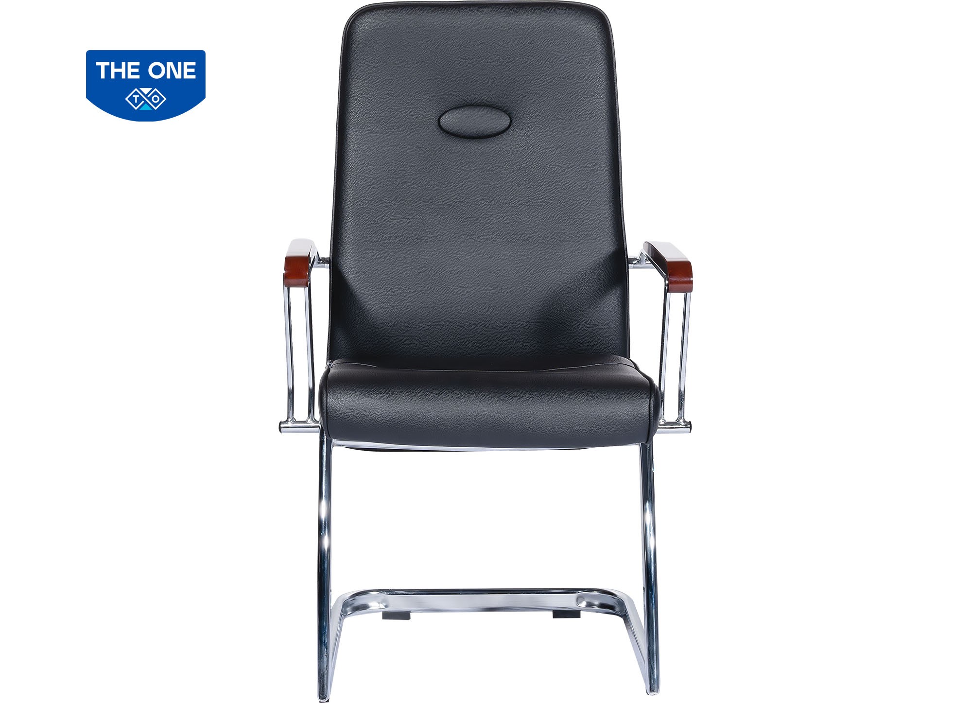 Ghế họp lưng trung, chân thép mạ, tay có ốp gỗ kết hợp thép mạ. Đệm tựa bọc PVC