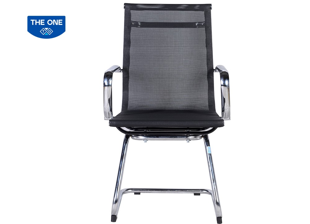 Ghế họp khung thép mạ, đệm tựa bọc vải lưới chịu lực.