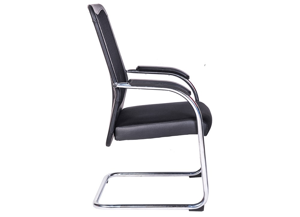 Ghế họp khung thép mạ, tựa bọc vải lưới, đệm mút bọc vải lưới xốp.