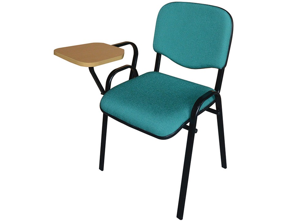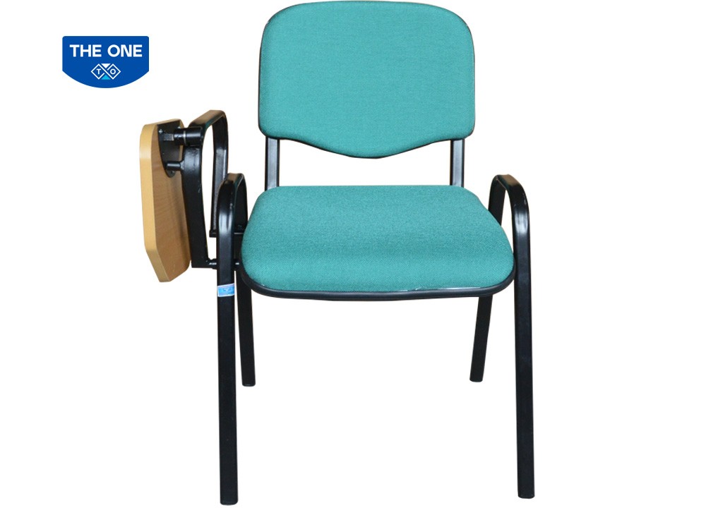 Ghế họp khung thép sơn tĩnh điện, có mặt bàn viết bằng gỗ melamine hoặc bàn nhựa.
