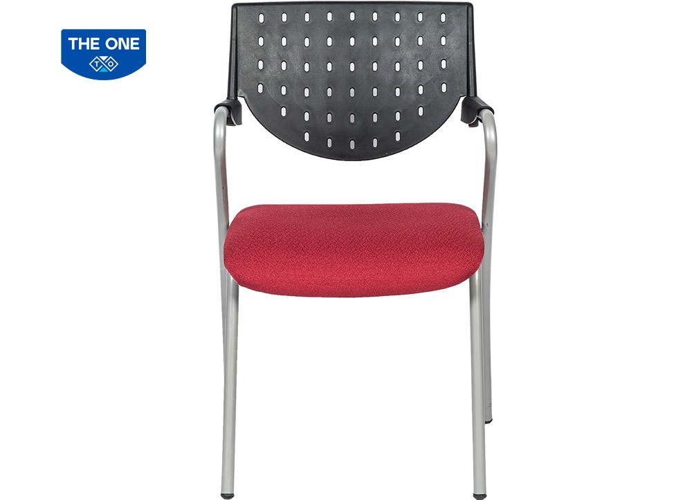 Ghế họp khung thép mạ, tựa nhựa, đệm bọc vải, ốp tay nhựa.