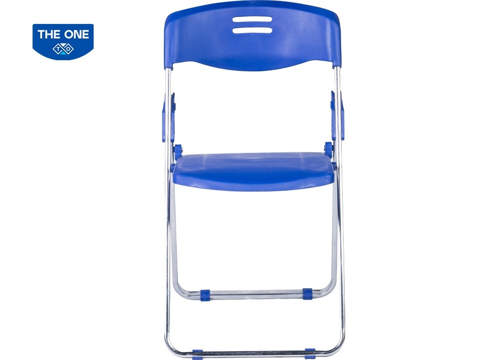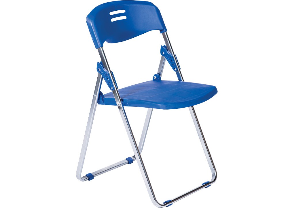 Ghế chân gấp khung thép, đệm tựa ghế bằng nhựa.