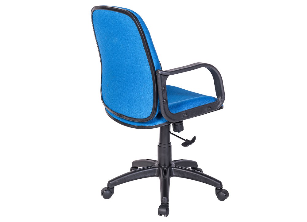 Ghế lưng trung, đệm tựa bọc vải, chân tay bằng nhựa.