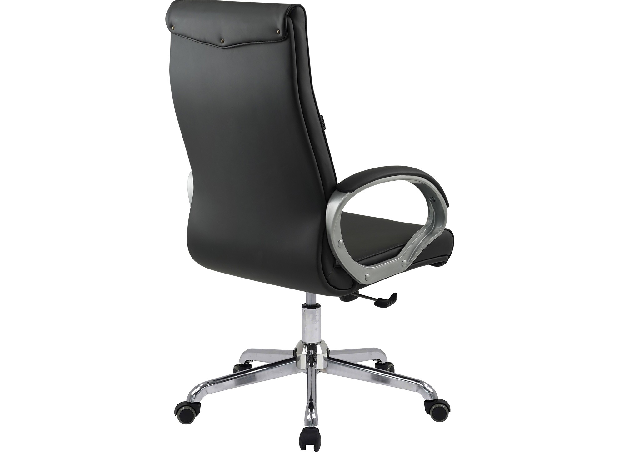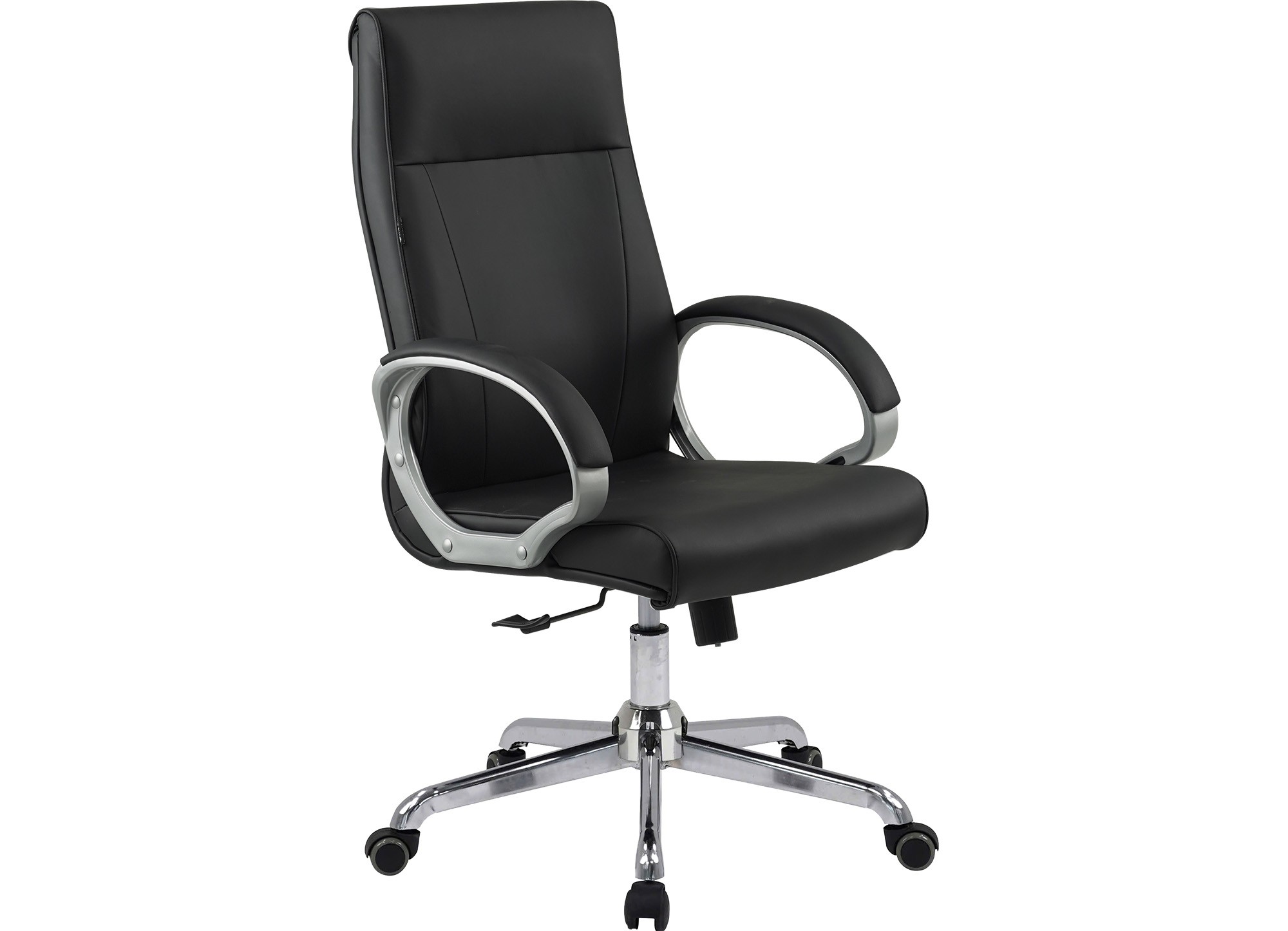 Ghế lãnh đạo lưng cao với thiết kế đệm liền tựa, được dán mút xốp và bọc PVC vân mịn cao cấp, tạo cảm giác thoải mái và sang trọng. Tay ghế bằng nhựa cố định, được sơn nhũ bạc, phần phía trên có ốp tay bọc PVC cùng màu với đệm, tạo nên sự đồng nhất trong thiết kế. Chân ghế bằng thép mạ, mang lại độ bền và sự chắc chắn, đồng thời góp phần tôn lên vẻ đẹp đẳng cấp cho không gian làm việc.