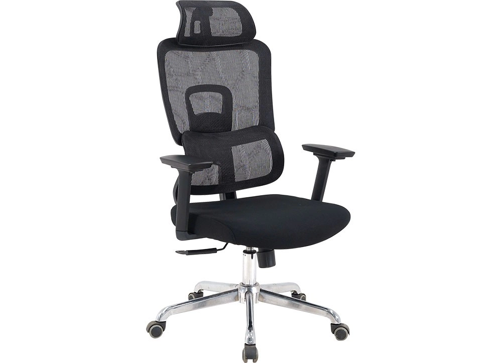 Ghế lưới lưng cao khung tựa nhựa bọc vải lưới, đệm mút bọc vải êm ái.