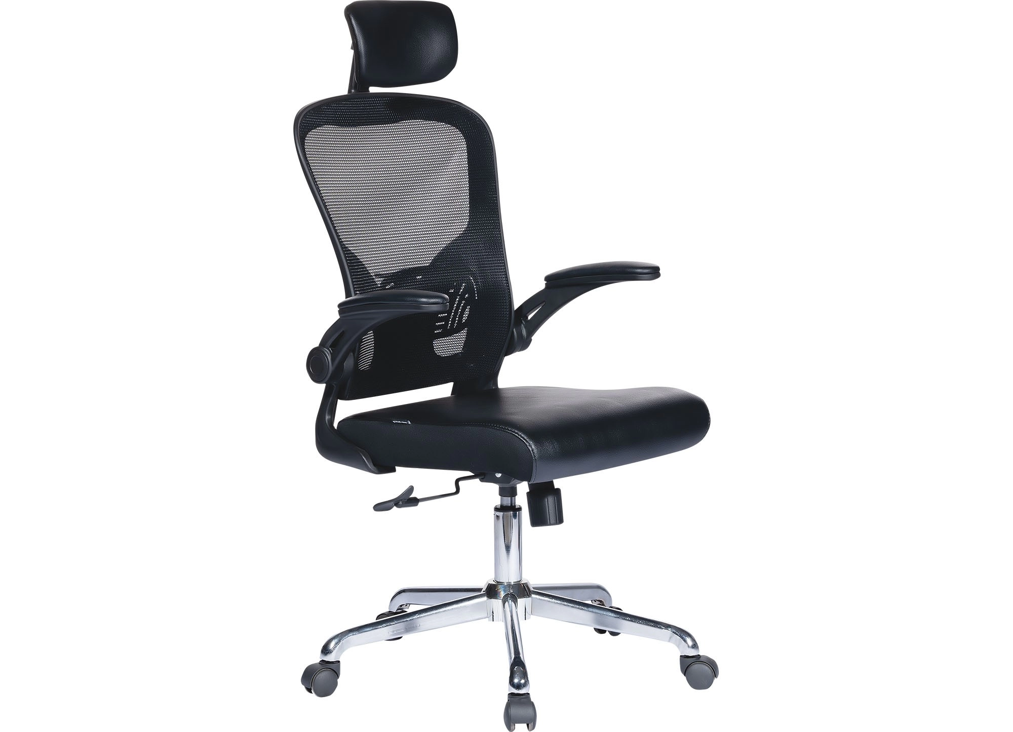 Ghế lưới lãnh đạo lưng cao, đệm bọc PVC, khung tựa nhựa bọc vải lưới. Tay có thể gấp lên - xuống khi sử dụng.