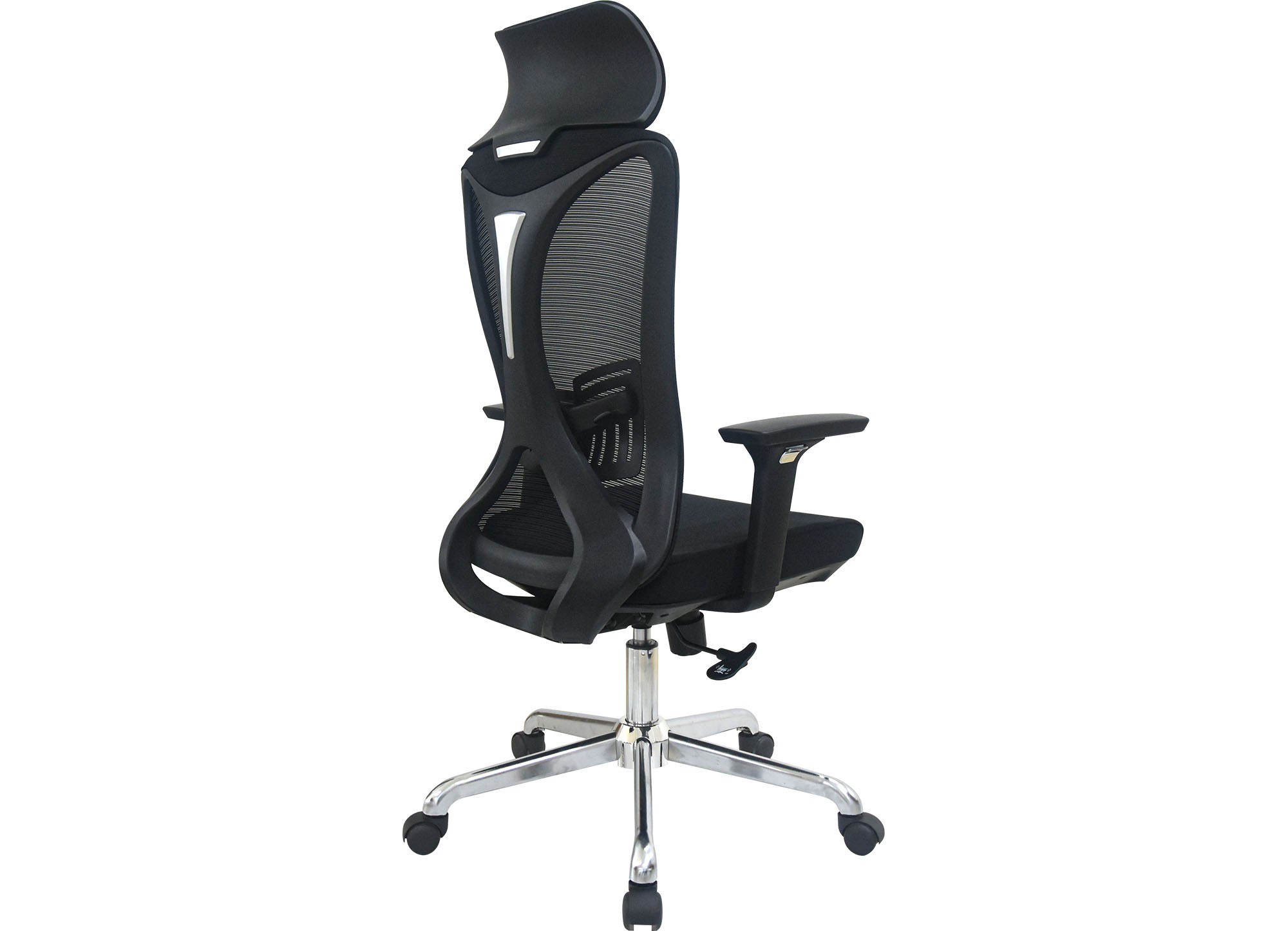 Ghế lưới lãnh đạo cao cấp, đệm mút bọc vải, tựa nhựa bọc vải lưới, tay ghế bằng nhựa có thể điều chỉnh cao thấp, mặt tay có thể trượt và xoay. Ghế có thể ngả hãm nhiều góc độ để thư giãn. Ghế sử dụng chân thép mạ