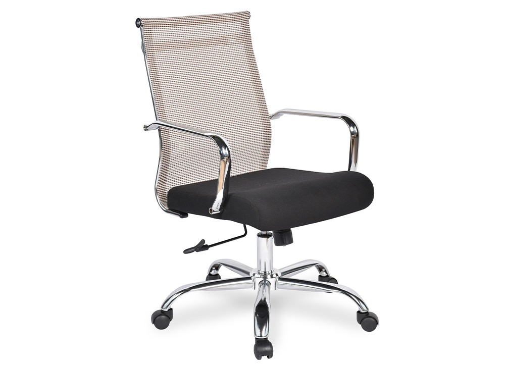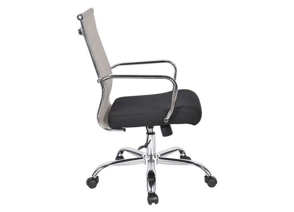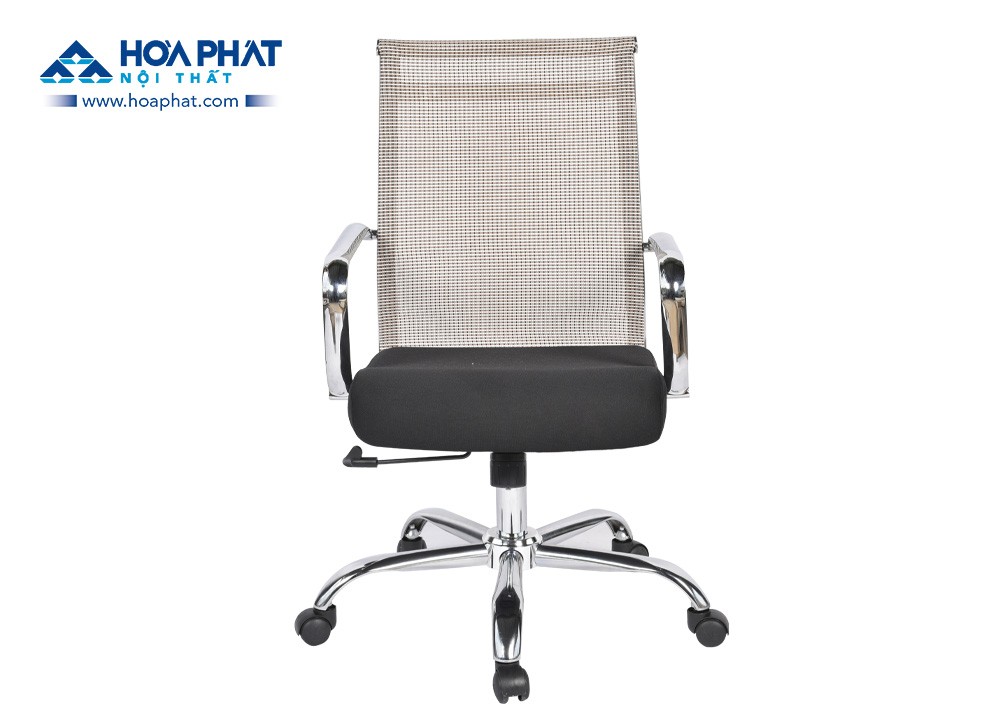 Ghế lưới chân tay thép mạ, tựa bọc vải lưới chịu lực, đệm mút bọc vải lưới xốp.