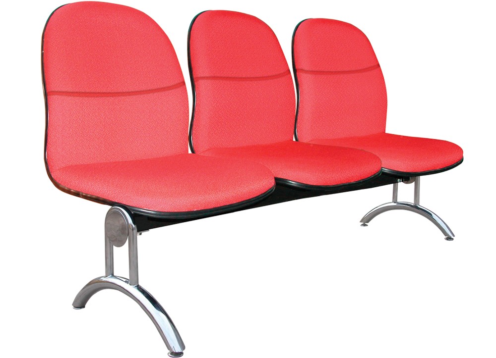 Ghế phòng chờ khung thép, có đệm tựa bằng mút bọc vải.