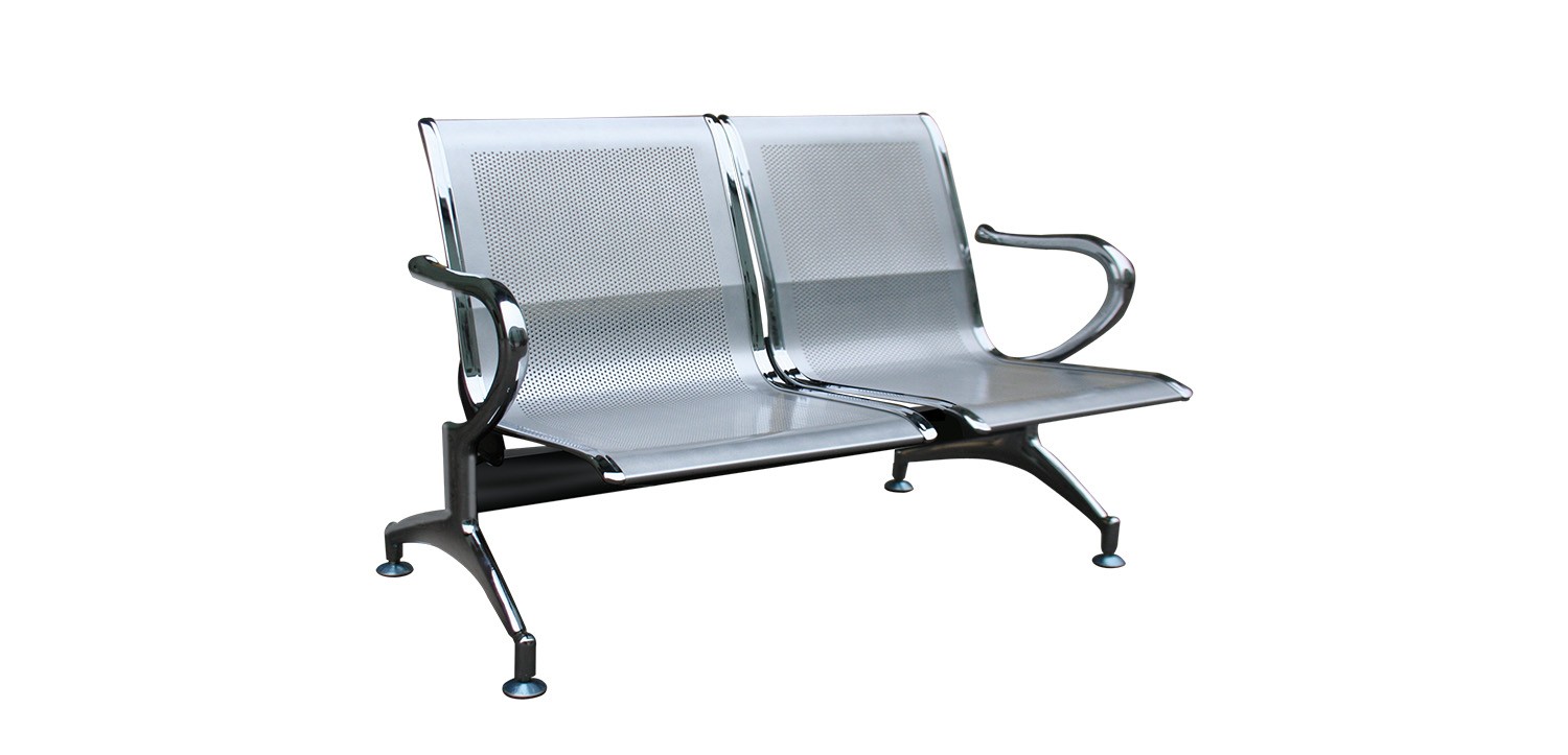 Ghế phòng chờ khung thép sơn tĩnh điện kết hợp mạ Ni-Cr, đệm tựa ghế có đột lỗ.