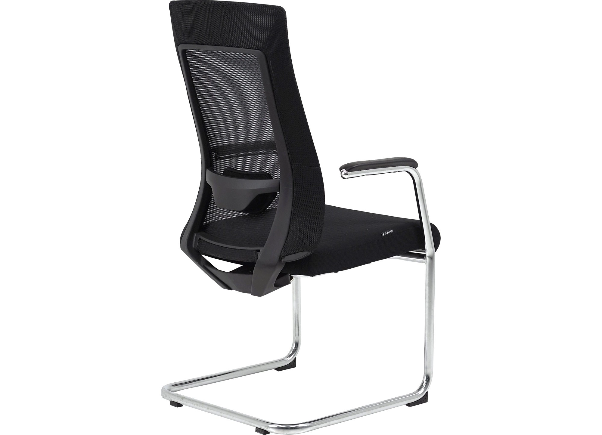 Ghế phòng họp, khung tựa nhựa bọc vải lưới, đệm mút bọc vải . Ốp tay bằng nhựa. Khung chân thép mạ ống Ø25.4