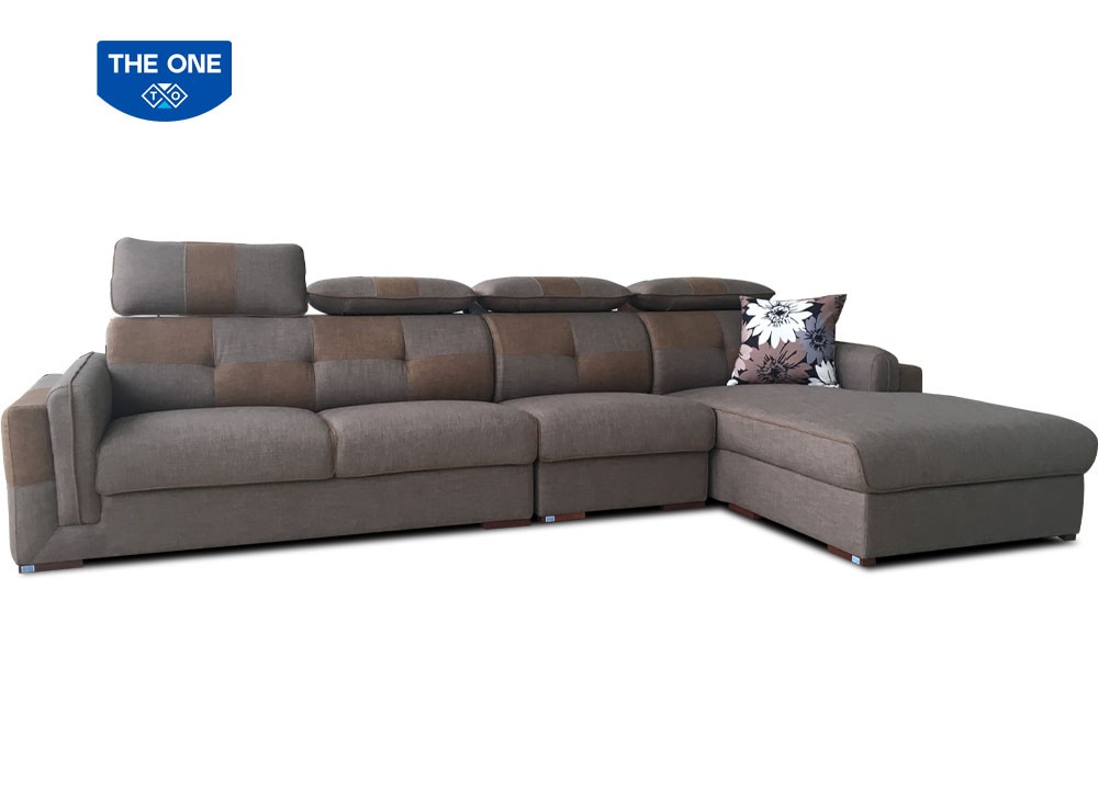 Ghế Sofa góc cao cấp bọc vải nỉ, tựa đầu ghế có thể điều chỉnh nhiều góc độ khi sử dụng.