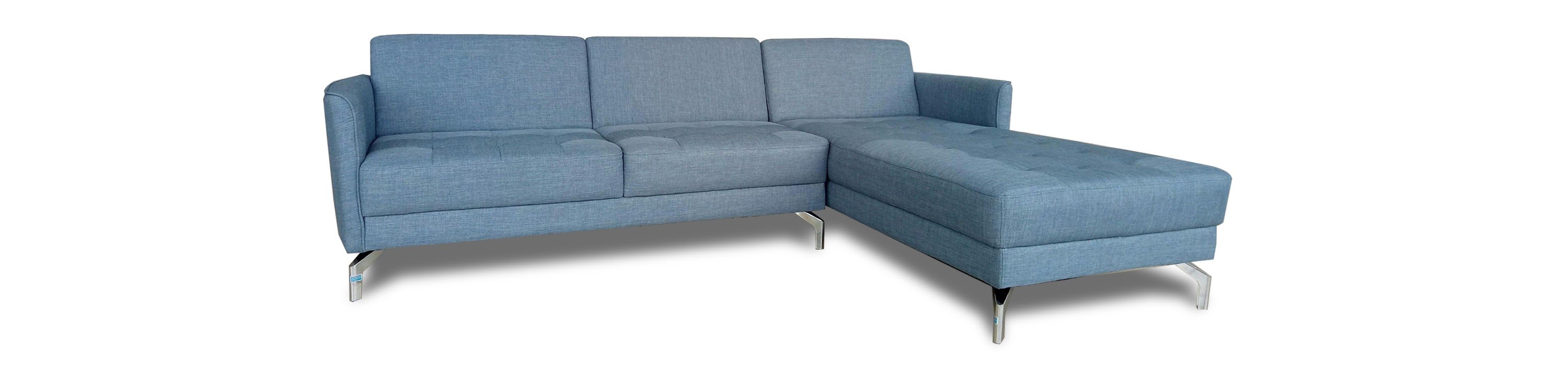 Bộ sofa góc bọc vải cao cấp, sử dụng chân thép mạ.