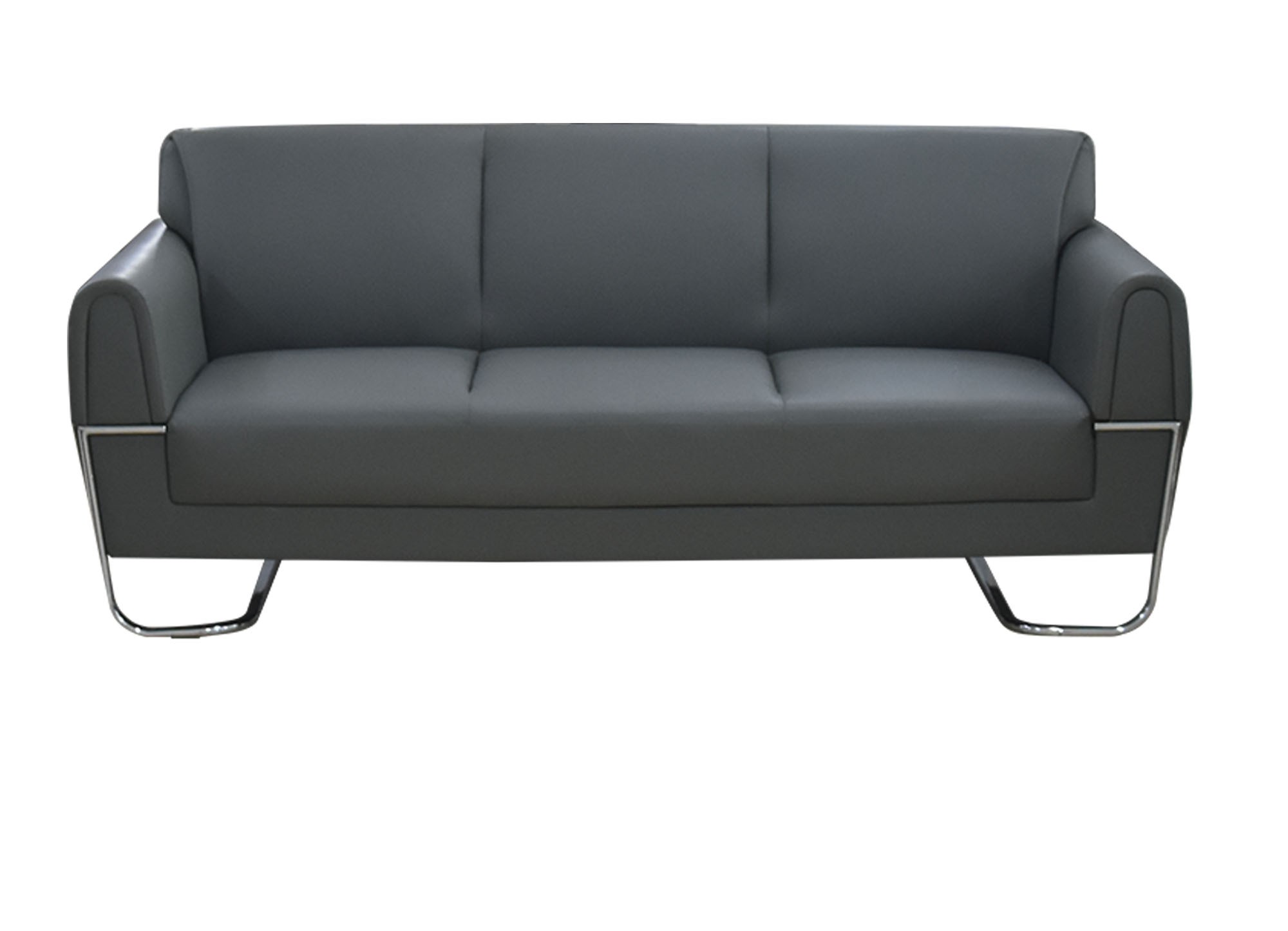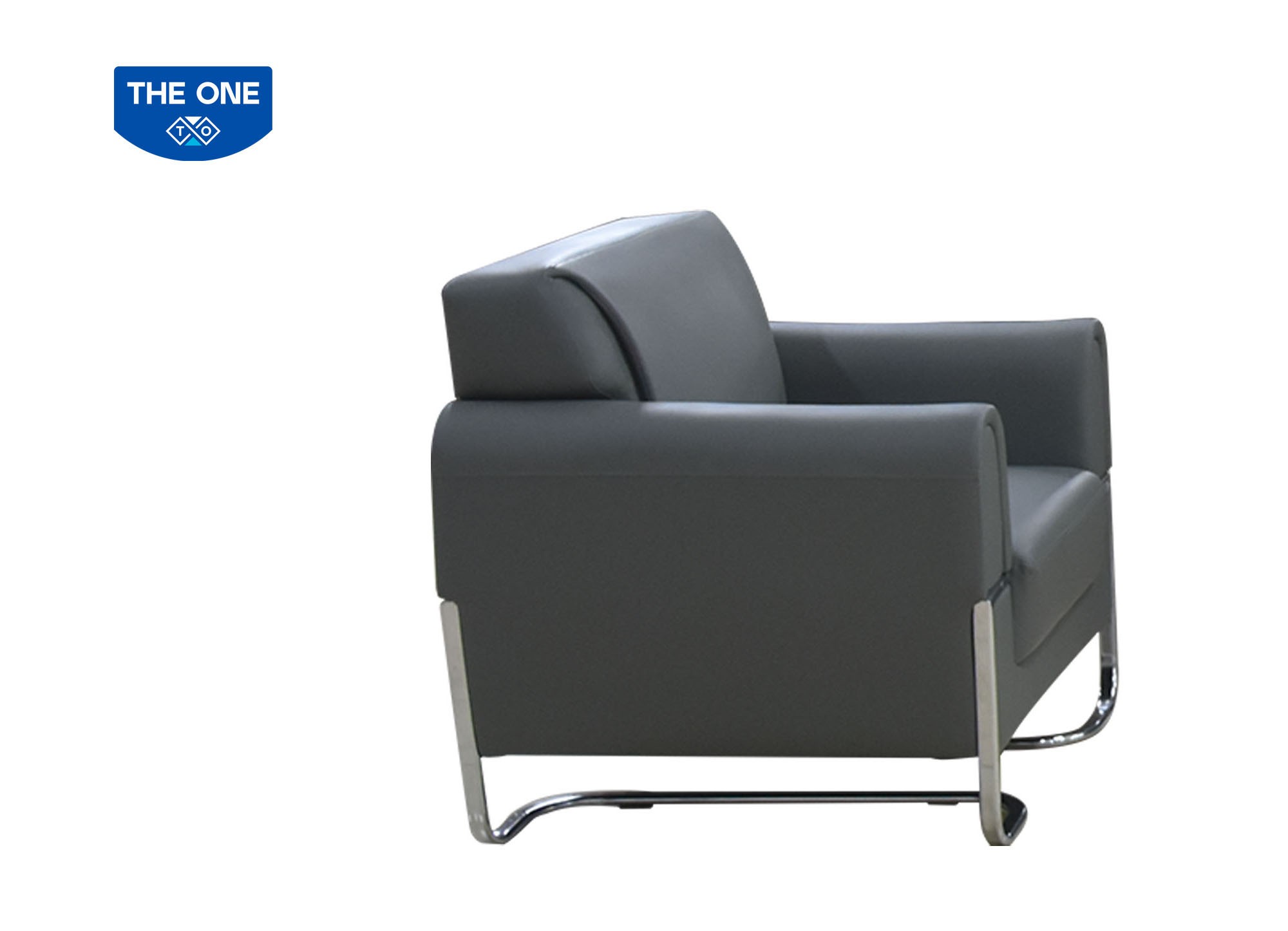 Bộ ghế sofa văn phòng kiểu dáng hiện đại, đệm tựa bọc da thật phần tiếp xúc người sử dụng hoặc PVC. Phần tựa ghế có may cánh trang trí. Khung chân thép mạ Cr-Ni sáng bóng.
