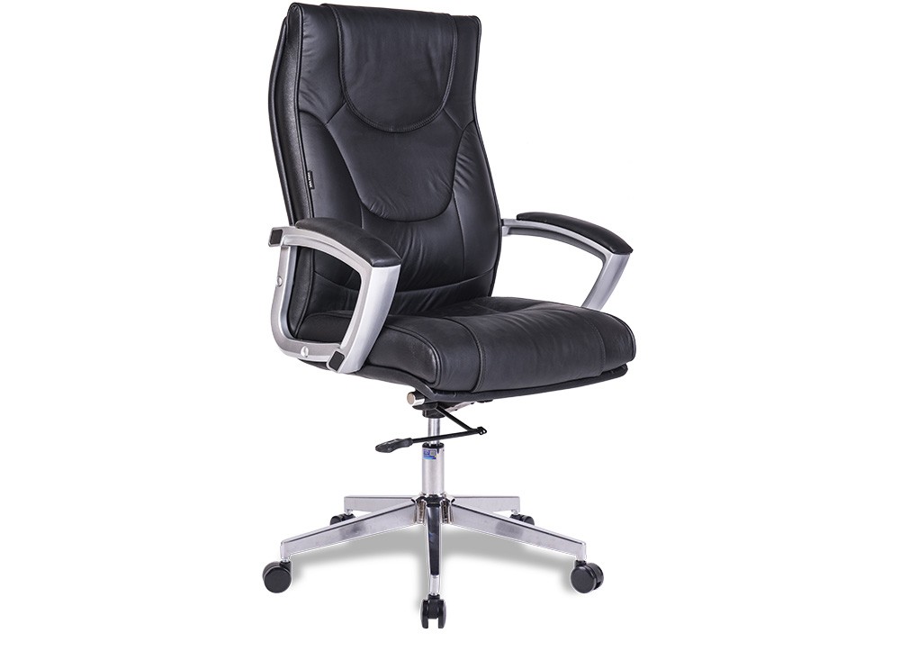 Ghế lãnh đạo có đệm tựa bọc da, da CN hoặc PVC. Chân thép mạ, tay nhựa sơn phủ màu nhũ bạc