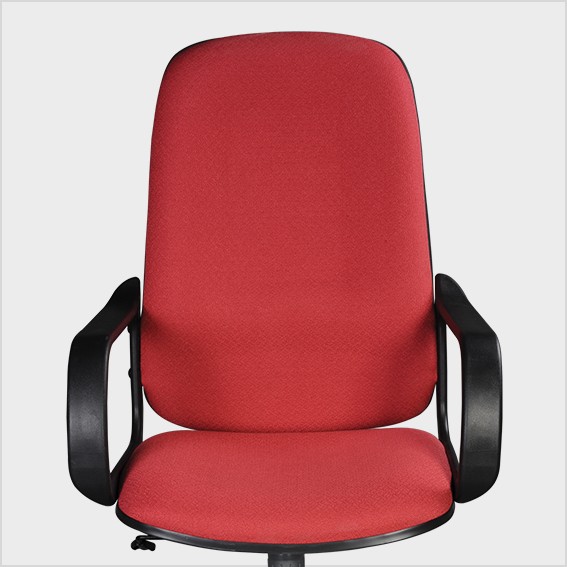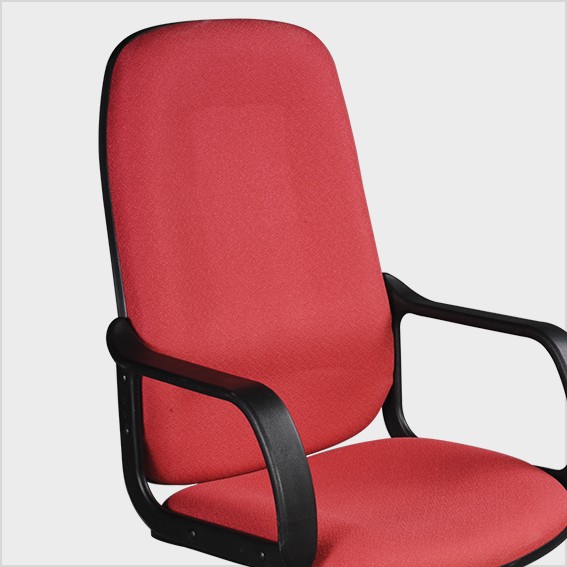 Ghế lãnh đạo lưng cao, đệm tựa bọc vải, chân và tay ghế bằng nhựa.