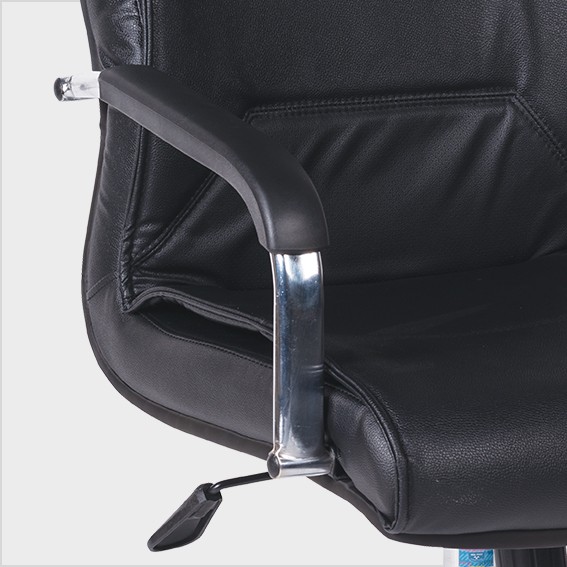 Ghế lãnh đạo có đệm tựa bọc da, da CN hoặc PVC. Chân và tay ghế làm bằng thép mạ, có ốp tay nhựa.