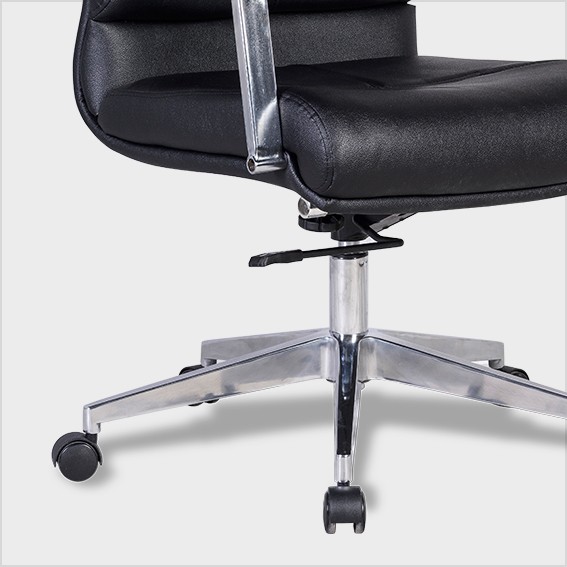 Ghế lãnh đạo có đệm tựa bọc da, da CN hoặc PVC. Tay gỗ sơn kết hợp thép mạ, chân hợpkim nhôm.