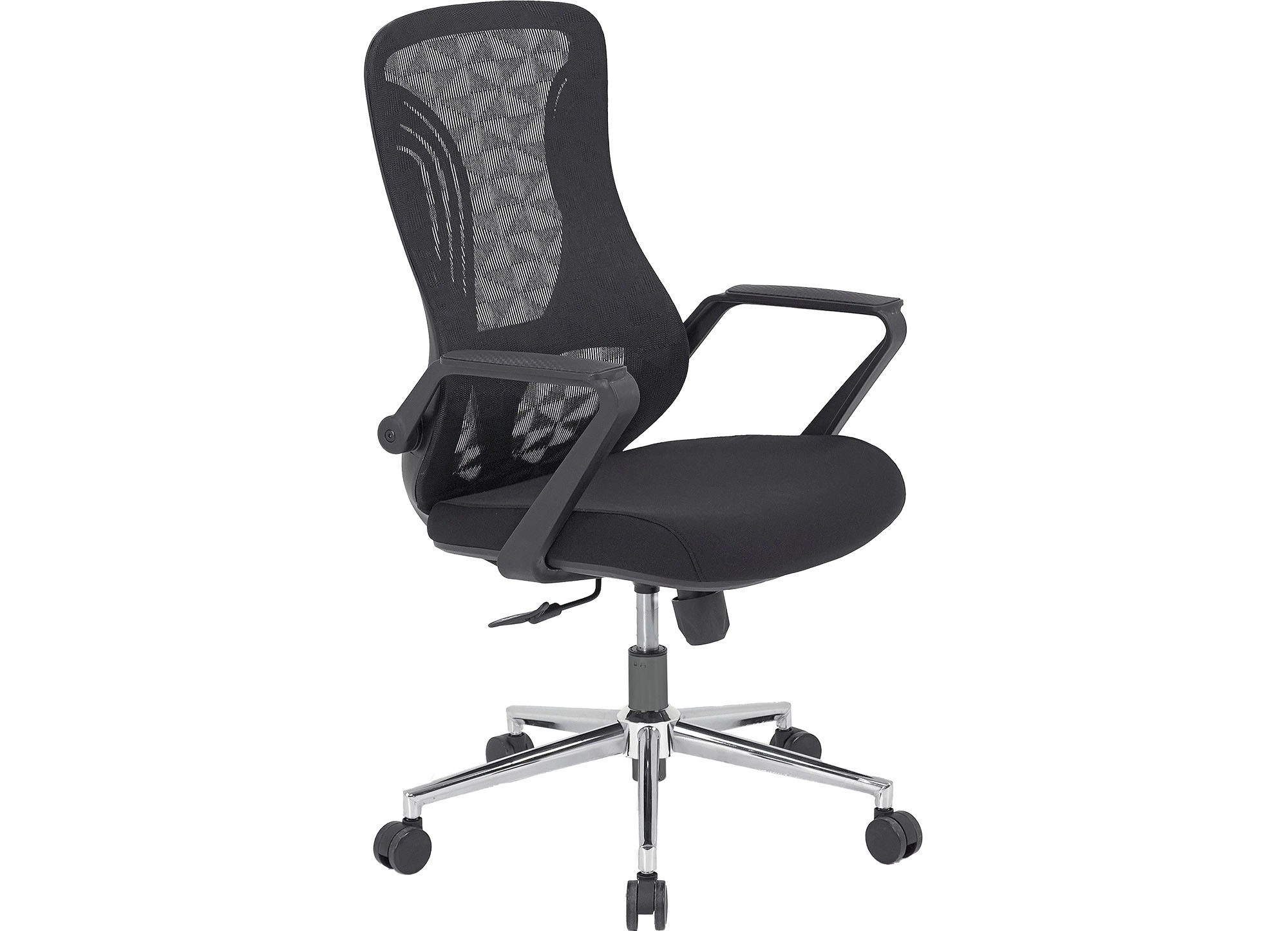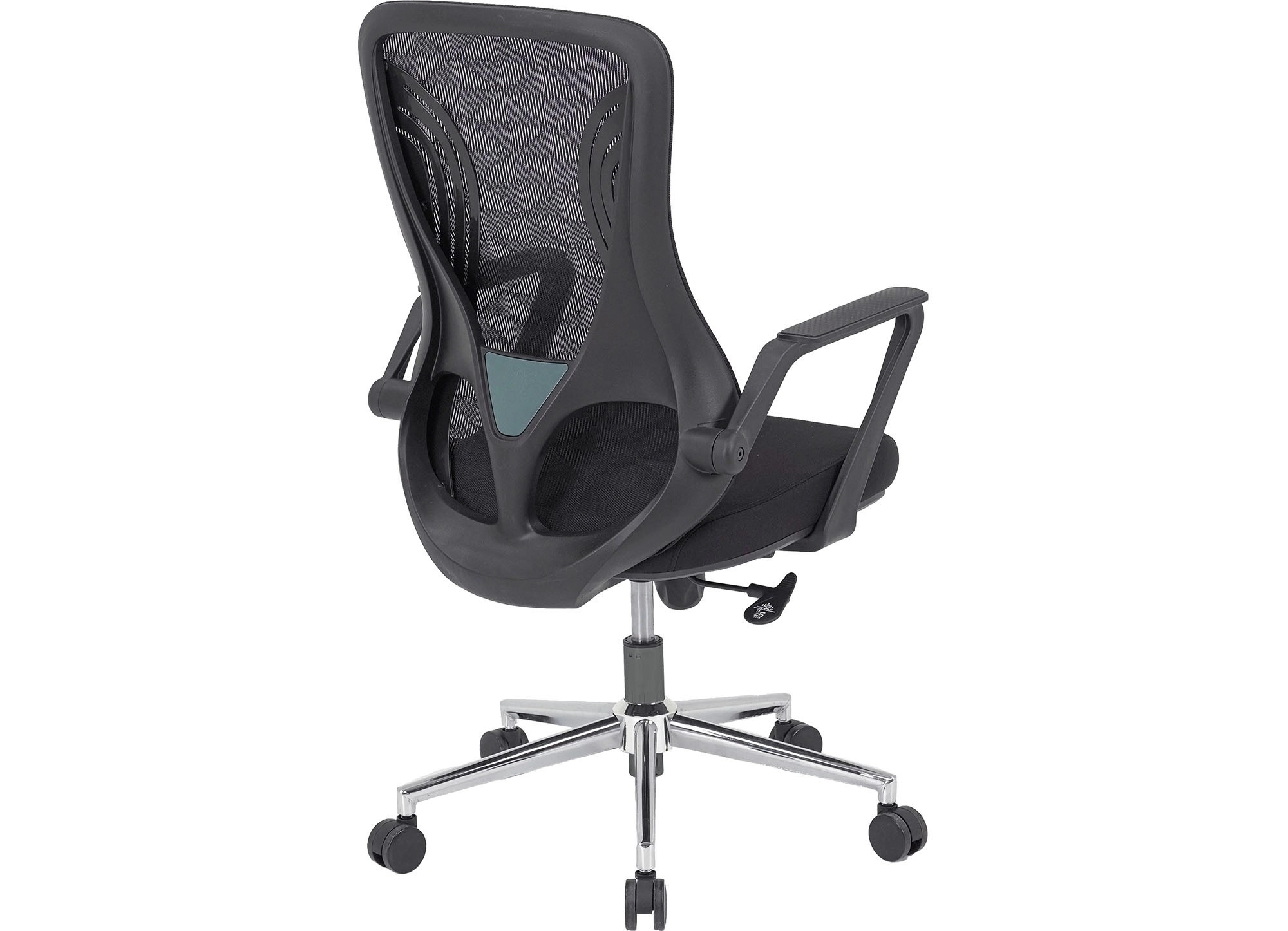 Ghế lãnh đạo khung tựa nhựa bọc vải lưới, đệm mút bọc vải phía dưới có ốp nhựa cao cấp. Tay ghế bằng nhựa, trên mặt tay có trang trí họa tiết 3D thẩm mỹ cao, chân mạ.