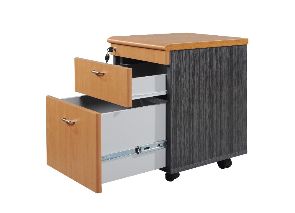 Hộc di động gỗ công nghiệp phủ Laminate có 2 ngăn kéo và sử dụng khóa dàn.