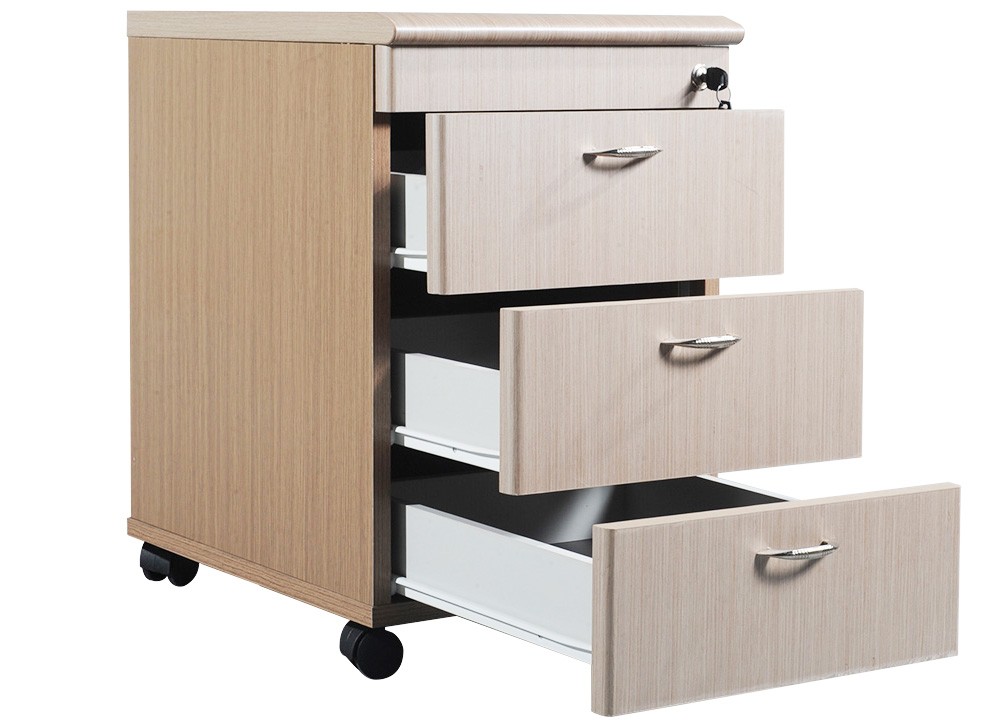Hộc di động gỗ công nghiệp phủ Laminate có 3 ngăn kéo và sử dụng khóa dàn.