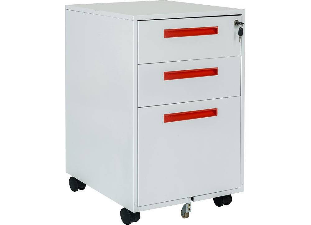 Hộc sắt di dộng 3 ngăn kéo sử dụng thép sơn tĩnh điện màu trắng sáng phù hợp với không gian văn phòng hiện đại.