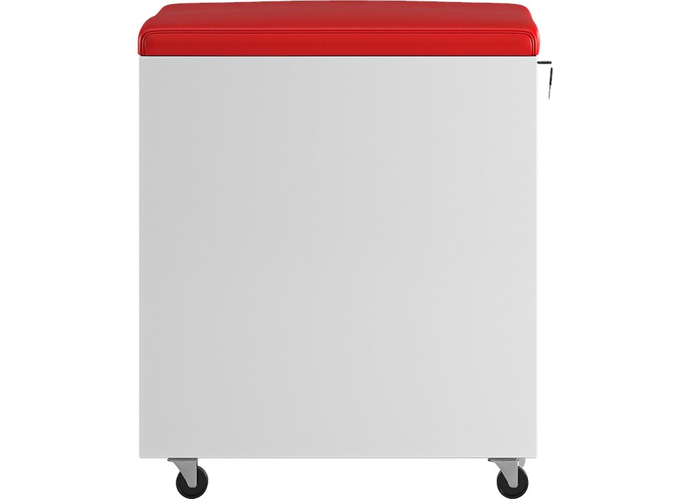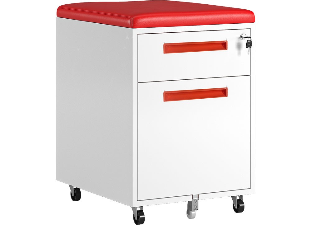 Hộc tài liệu 2 ngăn kéo sơn màu trắng, tay nắm đỏ cam sử dụng chung khóa dàn, ngăn kéo sử dụng ray bi.