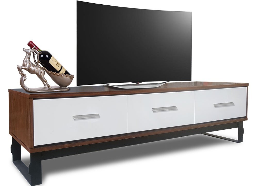 Kệ ti vi cao cấp khung thép sơn tĩnh điện có 3 ngăn kéo, mặt bằng gỗ Veneer óc chó.
