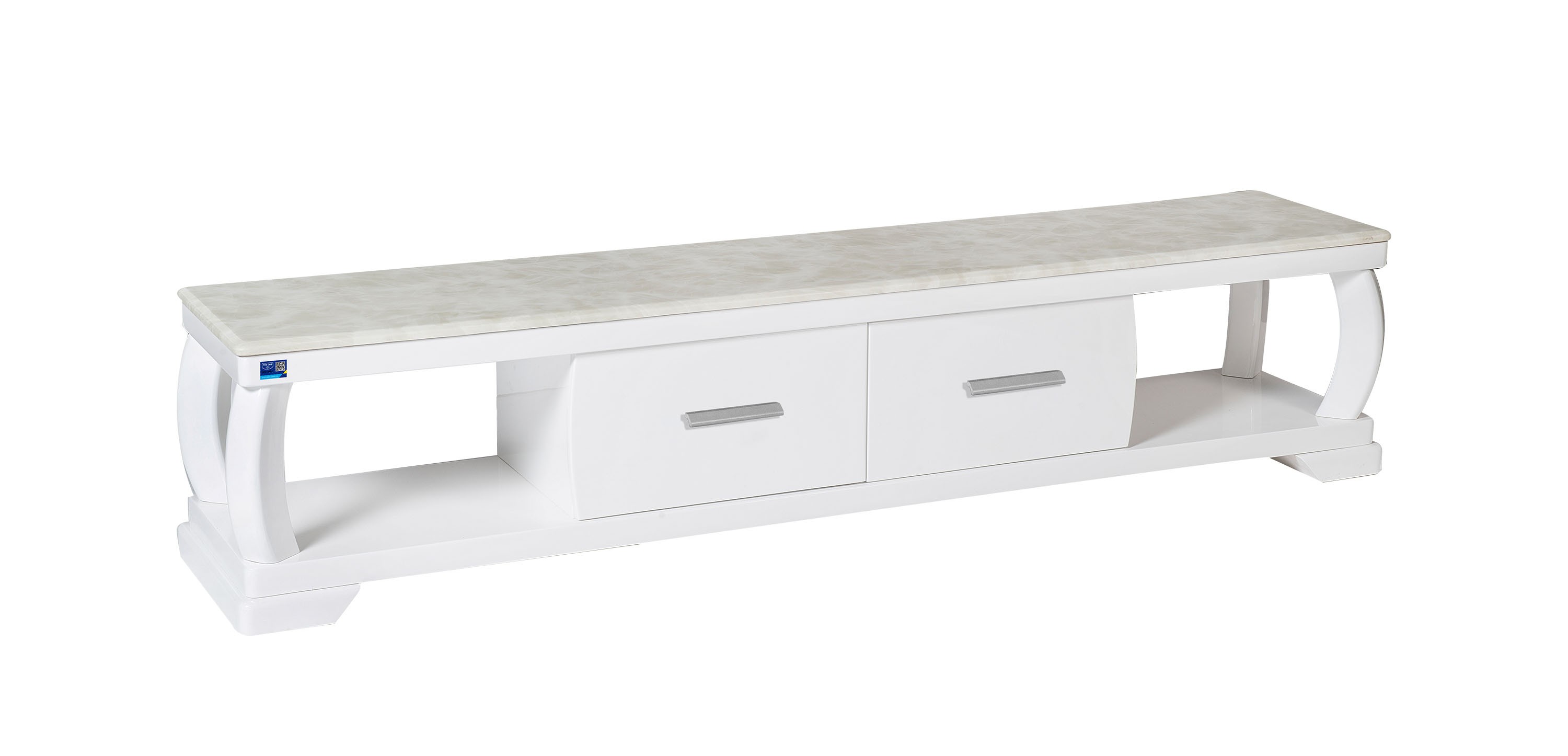 Kệ ti vi khung gỗ tự nhiên sơn PU kết hợp với mặt đá nhân tạo cao cấp tạo cho sản phẩm sự sang trọng, hiện đại.