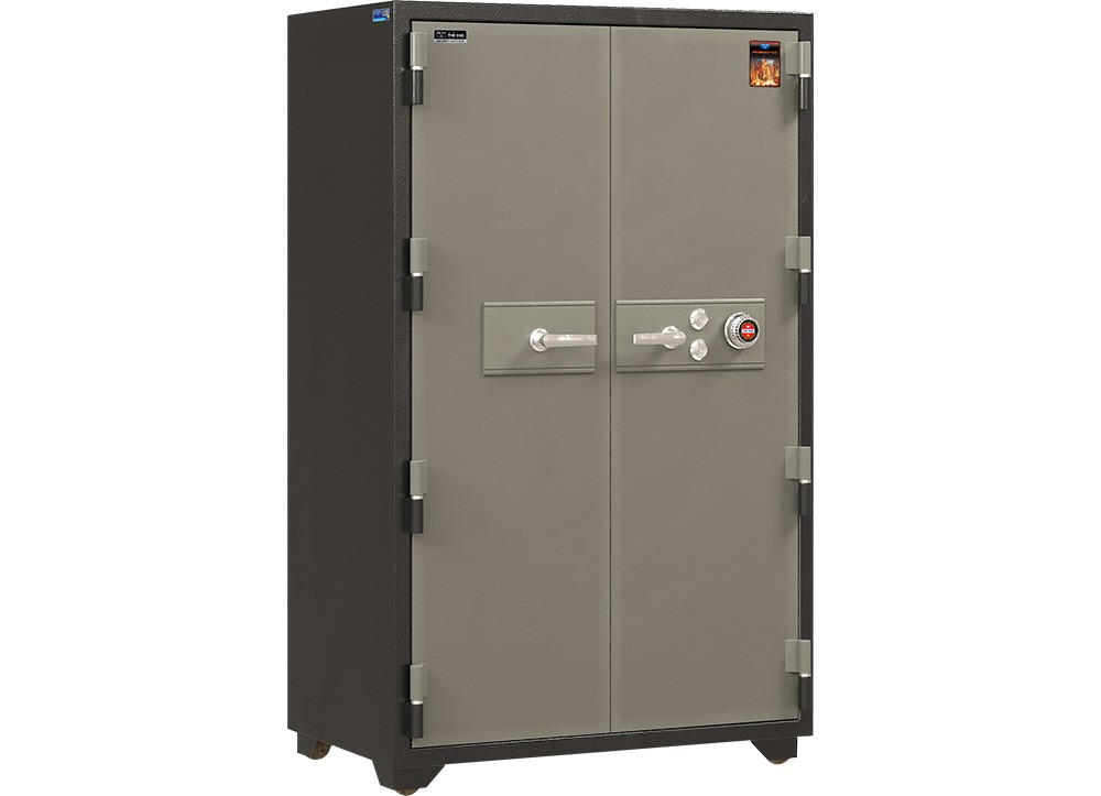 Két đứng hai cánh mở có 2 khóa chìa, 1 khóa mã và 2 tay nắm.