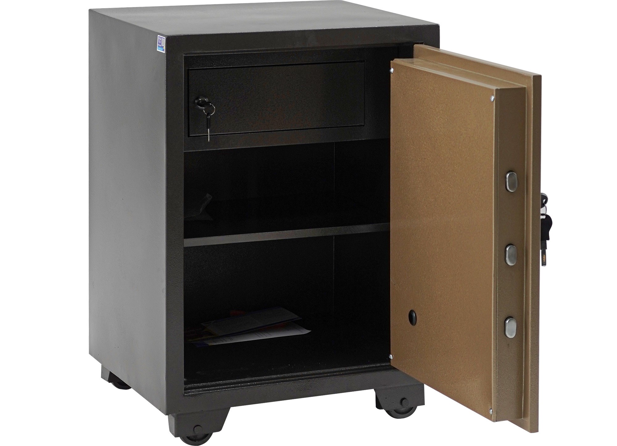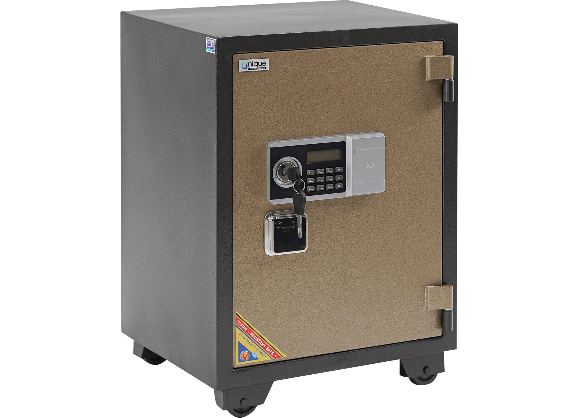 Két đứng có khoá chìa, khoá điện tử, tay nắm vuông, bên trong có ngăn phụ và 1 đợt cố định. Bánh xe sắt di chuyển.