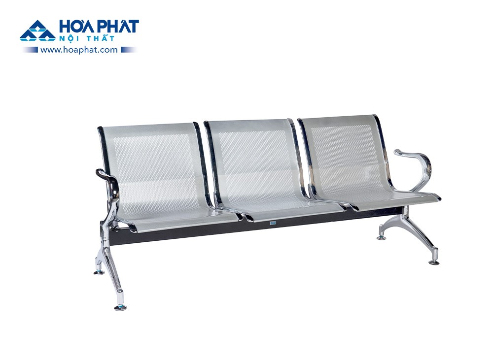 Ghế phòng chờ khung thép sơn tĩnh điện kết hợp mạ Ni-Cr, đệm tựa ghế có đột lỗ.