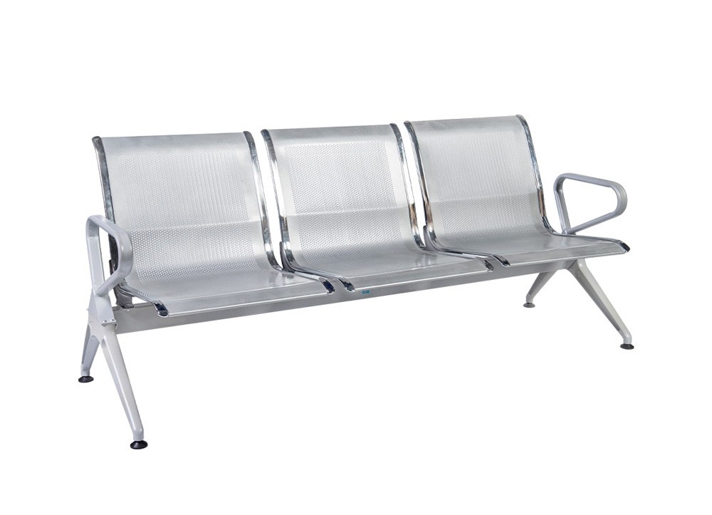 Ghế phòng chờ chân nhôm đúc, khung thép sơn tĩnh điện kết hợp mạ Ni-Cr., đệm ghế có đột lỗ.